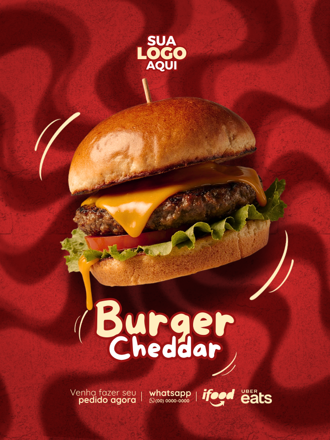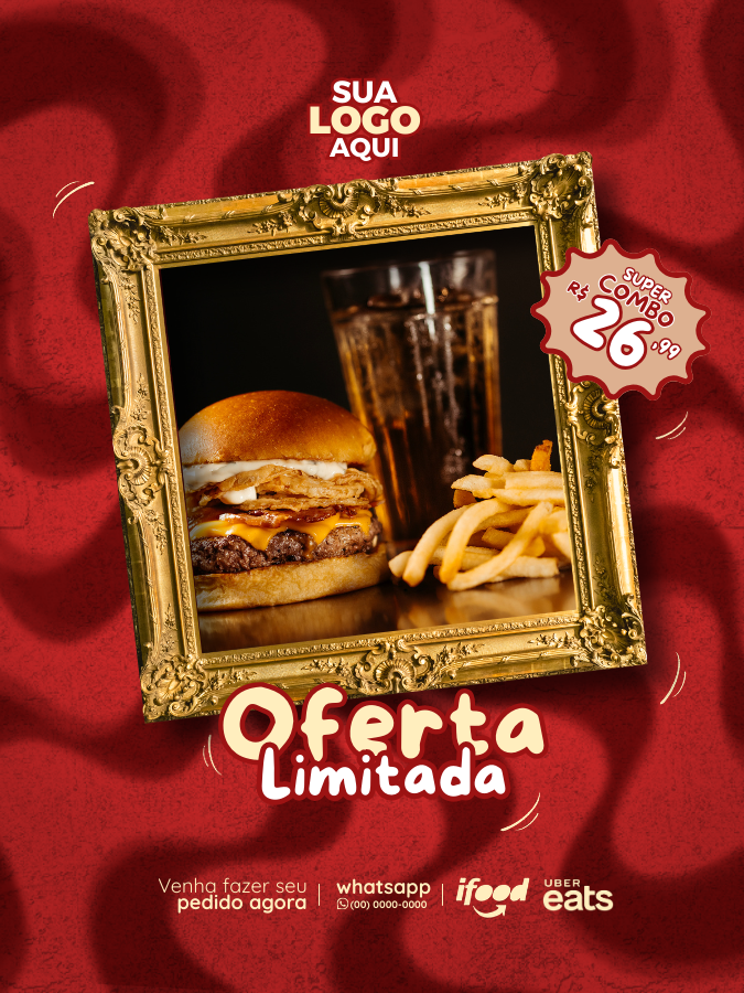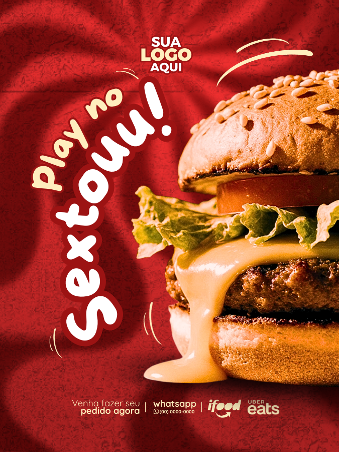 Você recebe acesso imediato a um pack com 33 artes profissionais para hamburgueria, prontas para editar e postar, além de 3 bônus exclusivos.